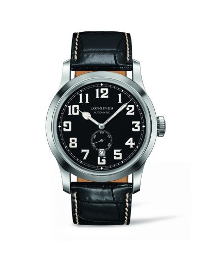 The Longines Heritage Military was introduced in 2016. Its design is based on an original 1918 Longines trench watch. The 2016 version features a 44mm stainless steel case and a black dial with oversized Arabic numerals.